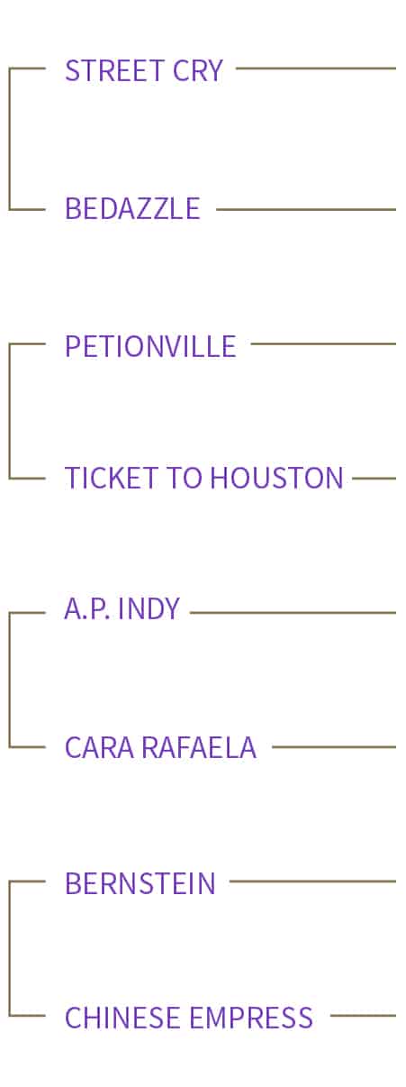 “He showed tremendous ability from the first time I worked him. It is extremely difficult to win both the Hopeful and Champagne. The only other horse I was fortunate enough to do that with was Practical Joke, so that’s pretty good company.” —Chad Brown