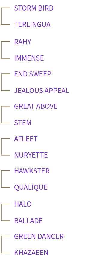Not This Time has Champion Epicenter and graded winner Simplification of a mare by Candy Ride (sire of Gun Runner and Twirling Candy) from the Fappiano line. On the cross with other Fappiano line mares there is a grade two winner by Not This Time out of a mare by Unbridled son, Empire Maker and a stakes winner out of a mare by his son Pioneerof the Nile (sire of American Pharoah, Cairo Prince and Classic Empire). There has also been success for the Not This Time/Fappiano cross through mares by Midnight Lute and Broken Vow. There is a graded winner from a mare by Unbridled’s Song, sire of Not This Time’s half-brother Liam’s Map, as well as a graded stakes winner out of a mare by Unbridled’s Song son, Rockport Harbor and a stakes winner out of a mare by another son, Songandaprayer. Unbridled’s Song can also be brought in through Cross Traffic, First Defence, Midshipman, Even the Score, Half Ours and Old Fashioned.